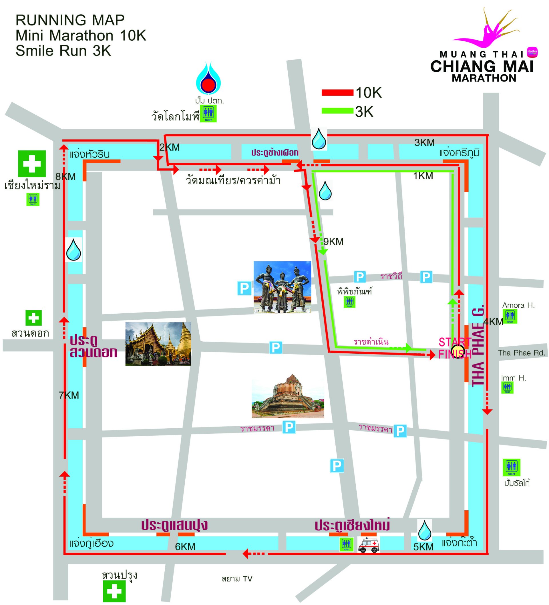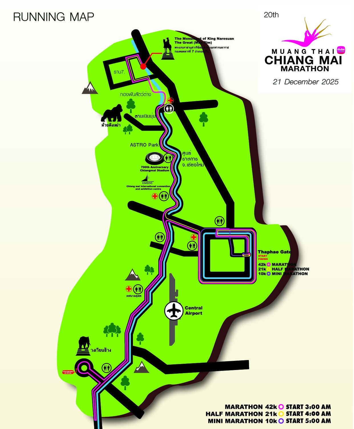 จุดเริ่มต้น ณ ข่วงประตูท่าแพ เส้นชัย ณ พระบรมราชานุสาวรีย์สมเด็จพระนเรศวรมหาราช อำเภอแม่ริม