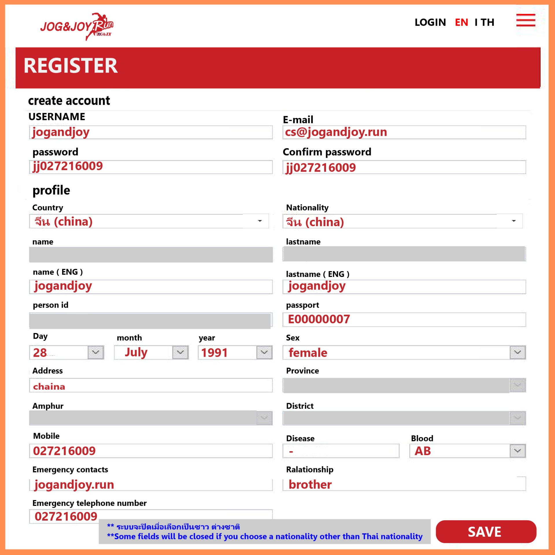 หมายเหตุ : อัตราค่าสมัครนี้ เฉพาะนักวิ่งที่มีสัญชาติไทย ตามบัตรประชาชน