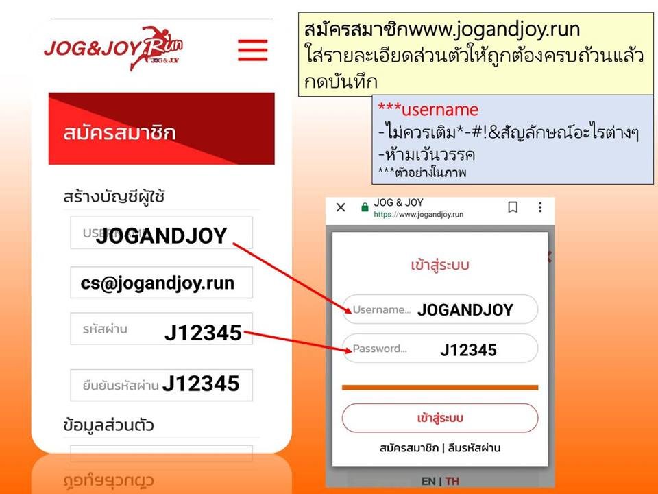 ผู้สมัครทุกคน สามารถตรวจสถานะการลงทะเบียนได้ตลอดเวลา โดยใช้เลขที่บัตรประชาชน หรือเลขทีหนังสือเดินทาง ค้นหาที่เว็บไซต์ลงทะเบียนรับสมัครวิ่ง www.jogandjoy.run